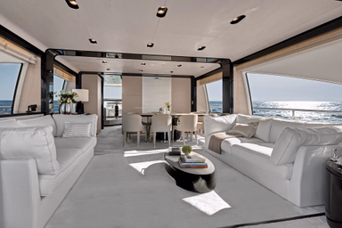 Sleek lines express the elegant ethos of the largest vessel in the Fly Series. Independant living areas add up to a sense of completeness on board, surprising guests with plentiful space for peaceful solitude or togetherness immersed in the mesmerizing sea views her large windows naturally offer. Celebrate splendor on the Fly 83.