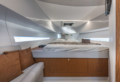 Below deck, accommodations for four along with a bathroom equipped with a shower ensure comfort in your aquatic excursions. Enveloped in abundant natural light, thanks to remarkable glasswork, the below-deck area is a perfect blend of functionality and luxury, promising a 5-star weekend on the waves.