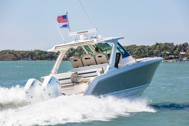 The heart of the 34 LS's remarkable performance lies in its Mercury propulsion system, promising swift, efficient voyages. Equipped with the latest Garmin Marine navigation systems and an intuitive glass cockpit, captains will find navigating the open waters as effortless as it is thrilling. Whether you are cruising at high speeds or anchoring in a secluded bay, the 34 LS delivers performance without sacrificing comfort or style.